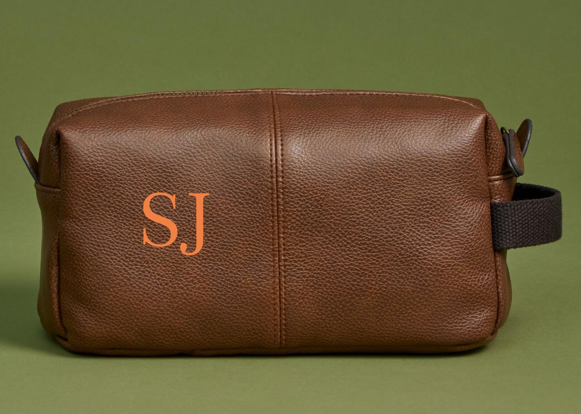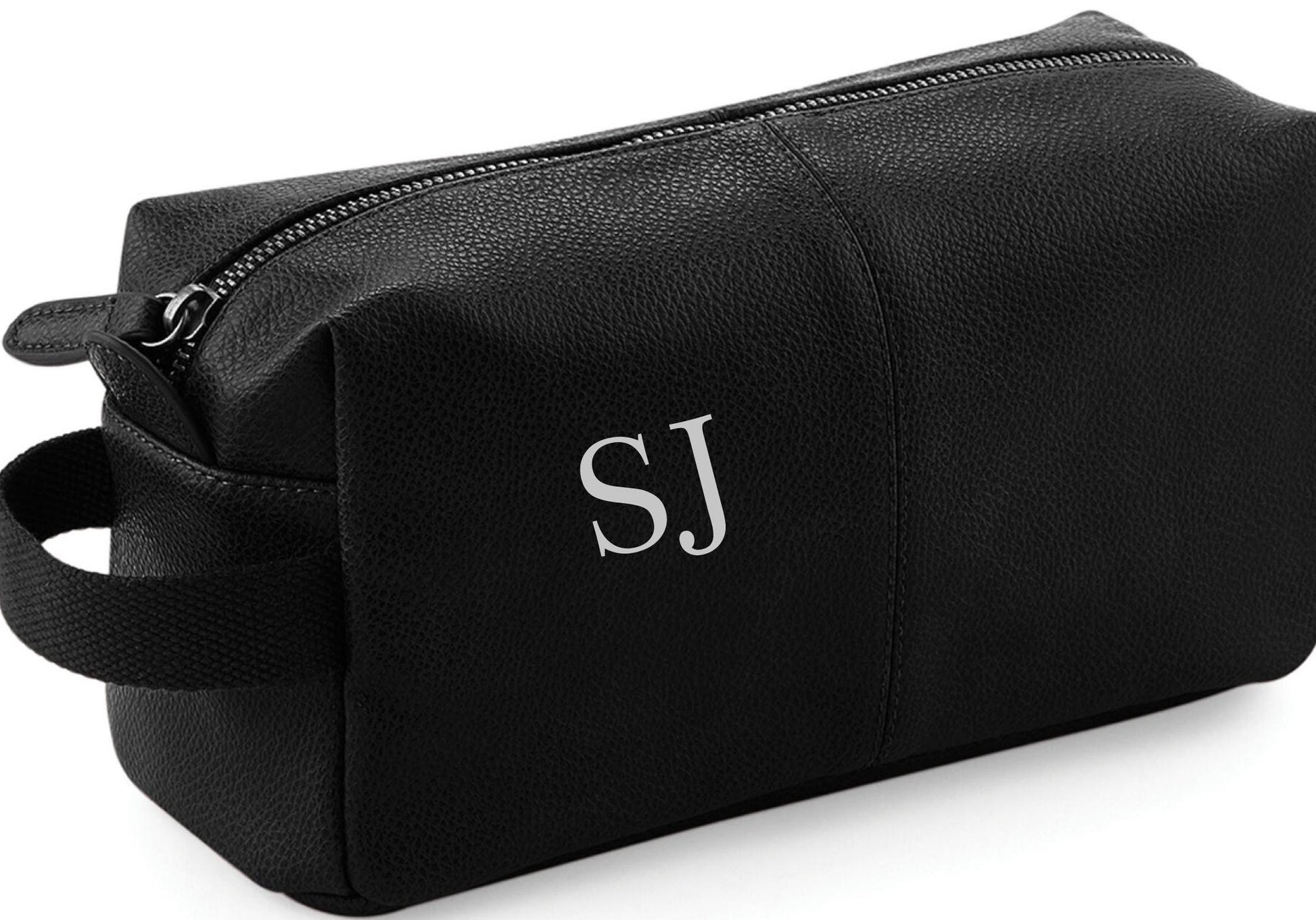 Personalized Black Leather-Look Wash Bag: Travel Toiletry Bag