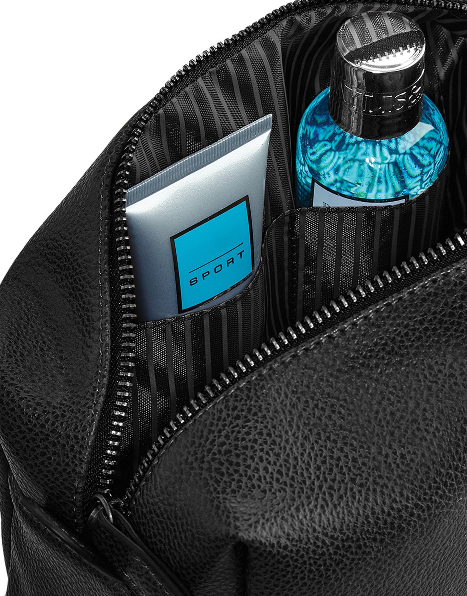 Personalized Black Leather-Look Wash Bag: Travel Toiletry Bag